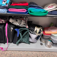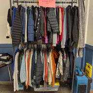 As you can see it is overflowing! Lots of winter items were left behind after our recent cold snap along with the usual suspects: knit hats, sweaters, hoodies, a few bike helmets, several water bottles and more.